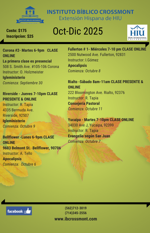 ¡Le invitamos a ser parte del Instituto Bíblico Crossmont! Preparándonos bien, para servir mejor.
